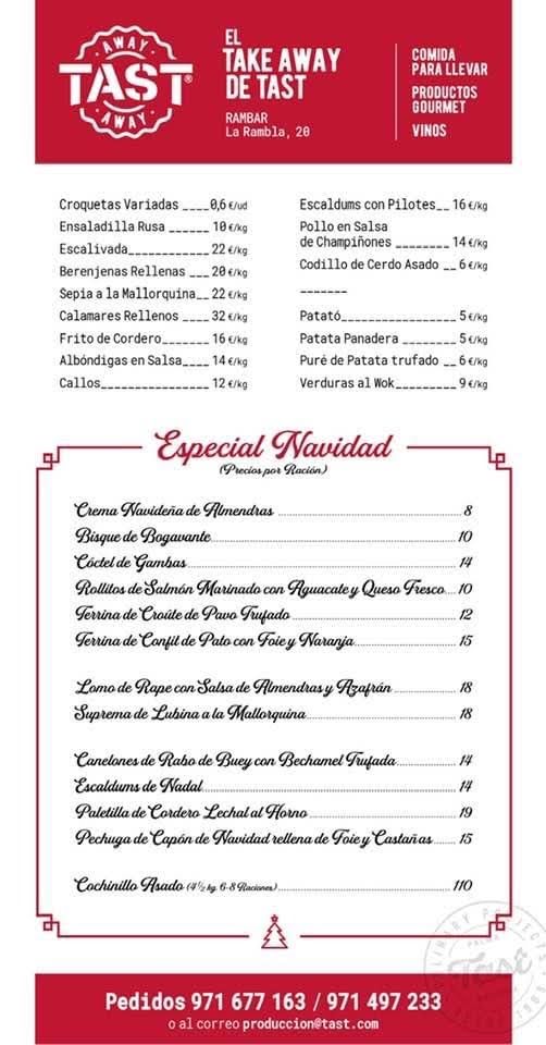 El siempre excelente Tast nos hace también una excelente propuesta de carta especial take away desde su Rambar con platos elaborados para la navidad además de sus tapas más clásicas.